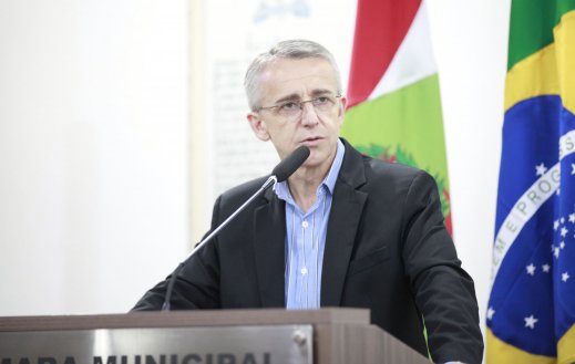 O prefeito Mário Hildebrandt (Podemos) ocupou a tribuna para saudar os vereadores na primeira sessão ordinária do ano.