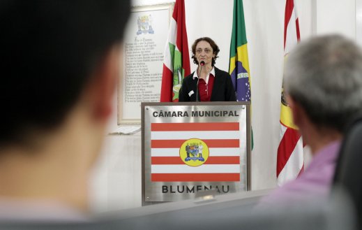 A representante da Escola Adventista de Blumenau, Marilei Schlemper da Silva, ocupou a tribuna liv