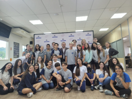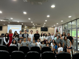 Os vereadores mirins titulares e suplentes da Legislatura 2023 concluíram, na manhã desta sexta-feira (10), o Curso de Oratória e Comunicação, promovido pela Escola do Legislativo Fritz Müller em parceria com a Câmara Mirim de Blumenau. O curso, que aconteceu durante esta semana, foi ministrado pelo professor Carlos Alberto Bittencourt. Essa formação marcou o início dos trabalhos da Escola do Legislativo neste ano e também da Câmara Mirim. Posteriormente os estudantes receberão seus certificados.