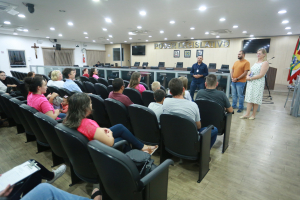 A Câmara Mirim de Blumenau realizou, na noite desta quarta-feira (22), uma reunião com os pais e/ou responsáveis pelos vereadores mirins titulares e suplentes da Legislatura 2023. No encontro, que aconteceu no plenário, a equipe da Câmara Mirim repassou informações sobre o programa e apresentou o planejamento com as atividades legislativas, formações e visitas previstas para o ano.