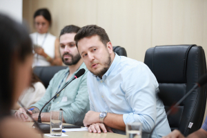 O presidente da Comissão, vereador Adriano Pereira (PT) abriu a reunião, na qual estavam presentes o vice-presidente Maurício Goll (PSDB), relator Carlos Wagner – Alemão (UNIÃO BRASIL); além de representantes do Serviço Autônomo Municipal de Água e Esgoto (Samae), Universidade Regional de Blumenau (Furb), Reciblu e Cooperblu.