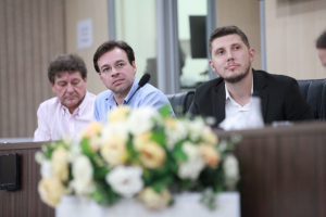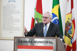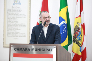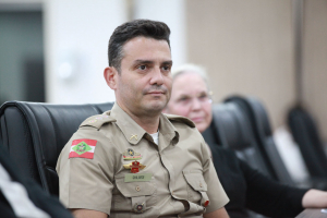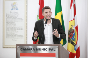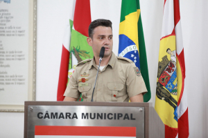 O homenageado Major Tiago Teixeira Ghilardi agradeceu ao vereador pela honraria. Lembrou que chegou em Blumenau em 2001 quando serviu o Exército Brasileiro no 23º Batalhão de Infantaria e também lembrou da sua atuação na tragédia da enchente de 2008, no salvamento e resgate de pessoas. “Eu voltei a Blumenau agora em 2022 para atuar no Colégio Militar da cidade, que foi criado em 2018 com duas turmas pelo empenho da Câmara, do Poder Executivo e da comunidade. Tivemos uma pausa com a pandemia e agora pós-pandemia são 10 turmas de estudantes. O colégio é pautado na disciplina e na hierarquia como ferramenta de ensino. Foi um momento pós-pandêmico com muitas dificuldades, mas trabalhamos pela motivação das crianças e para o entendimento do que é um colégio militar. Hoje contamos com 300 alunos do 6° ano ao 3° ano do Ensino Médio e vamos formar a primeira turma no ano que vem”, apontou, agradecendo a Câmara pela moção e estendendo a honraria a todos os profissionais e todos os alunos que atuam no colégio.