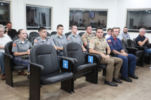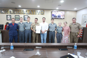 O vereador Cezar Campesatto destinou a moção de louvor ao diretor do Colégio Policial Militar Feliciano Nunes Pires, Major Tiago Teixeira Ghilardi, pelos serviços prestados à comunidade e por desenvolver um excelente trabalho social e familiar através do ensino no colégio. O parlamentar contou um pouco da carreira e da formação do Major, que ingressou na Polícia Militar de Santa Catarina em 2009. Citou os serviços prestados por ele em várias cidades do Estado até a sua volta a Blumenau, no ano passado, para assumir a direção do Colégio Militar Feliciano Nunes Pires. “Eu já pude presenciar a tamanha dedicação, disciplina e comprometimento dele e de todos junto aos 300 alunos do colégio. Essa moção não é apenas dedicada ao trabalho prestado para a nossa cidade, mas também para todo o Estado e para o país. Hoje mais do que nunca precisamos de pessoas como você. Foi uma honra poder entregar essa moção”, enalteceu, desejando que ele continue fazendo esse excelente trabalho com essas crianças e adolescentes, que serão o futuro da cidade.