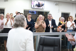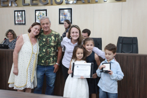 A homenageada Elke Willecke apontou que se sentiu muito honrada e feliz em receber a honraria da Câmara de Vereadores. Ela disse que se aposentou faz cinco anos. Lamentou por não conseguir contribuir como antes com todas as entidades que é e já foi envolvida. “Eu só recebi de volta aquilo que eu ofereci. É uma satisfação muito grande podermos ajudar as pessoas. Acredito que qualquer pessoa pode dedicar um tempo do seu dia para se doar ao próximo. Muitas vezes, eu tive dificuldades, mas sempre superei. Além de ser voluntária, eu assumi vários cargos, entre eles, o de coordenadora Nacional das Casas da Amizade, o que foi uma época muito feliz, pois eu conheci muitas entidades e pude trazer para Blumenau o que eu aprendi lá fora”, informou. Agradeceu aos seus familiares que sempre a apoiaram na caminhada. Agradeceu a Câmara de Vereadores pela honraria e agradeceu a todas as entidades das quais ainda faz parte.