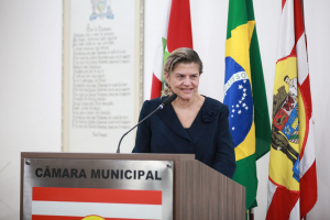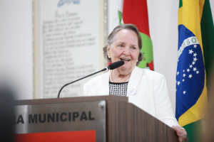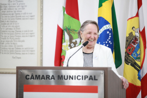 A vereadora Cristiane Loureiro entregou a Comenda a Elke Willecke, que é sócia fundadora da Rede Feminina de Combate ao Câncer de Blumenau, desde 1974. Foi presidente da Rede Feminina de Combate ao Câncer de Blumenau entre 1986 a 1988. Também é sócia fundadora da Casa da Amizade de Blumenau e de outras entidades da cidade. Participa do grupo de voluntárias da APAE desde 1972, entre outras participações em entidades e contribuições para a cidade. “Eu tenho a honra de entregar essa comenda para ela, que foi responsável por fundar diversas entidades, desenvolveu e desenvolve importantes trabalhos sociais com muito amor e dedicação. É uma história traçada por doação, em fazer o bem, em lutar pelo próximo e dar de si antes de pensar em si. É uma grande felicidade e satisfação em poder homenageá-la”, destacou.