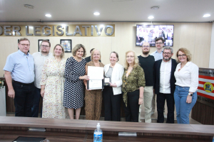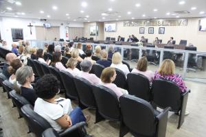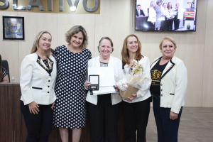 A Câmara de Blumenau realizou, na noite desta quinta-feira (30), no Plenário, sessão solene para entrega da Comenda do Mérito Feminino Celina Guimarães Vianna. Foram homenageadas com a comenda três mulheres que se destacam na conquista do espaço feminino no município. Os nomes das homenageadas foram indicados pelos vereadores proponentes e aprovados pelos demais membros do Legislativo Municipal. Esta foi a segunda vez que a Comenda foi entregue na Câmara – a primeira foi no ano passado. A criação da honraria foi aprovada em 2021 através do Decreto Legislativo Nº 1218/2021, de autoria da vereadora Cristiane Loureiro (Podemos).