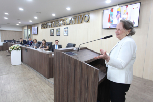 Adriana Laurentino Moreira agradeceu a oportunidade e por este momento de homenagem. Ela compartilhou esta comenda com o grupo do Colégio Shalom, do qual faz parte. Apontou que o grupo é composto pelo colégio, pelo programa de contraturno, que atende crianças em situação de vulnerabilidade social, e também pela igreja Shalom. “A nossa missão é servir o próximo com amor. O nosso propósito é servir, acolher, amar e cooperar para ajudar a formar gerações. Estamos trabalhando e investindo a nossa vida, o nosso conhecimento e o nosso potencial na formação de uma geração que já está impactando o Brasil. E para tudo isso nós acreditamos que temos uma bússola, que é Jesus”, destacou, compartilhando a honraria com todas as pessoas que passaram pela sua caminhada de vida e a ajudaram a chegar onde está.