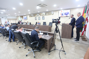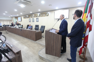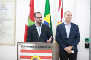Rafael Branco Betuol, gerente-geral do Hospital Santo Antônio, e Tadeu Avi – presidente do Conselho Curador da Fundação Hospitalar de Blumenau, ocuparam a tribuna livre para falar sobre os resultados dos últimos quatro anos e os planos para o futuro do hospital.