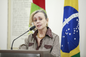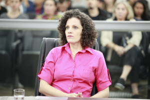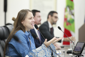 Silmara Miguel, proponente da audiência pública, fazer sua fala. Ela disse que