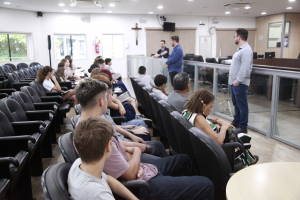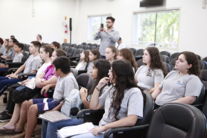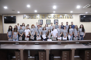 Os vereadores mirins titulares e suplentes da Legislatura 2025 estão se preparando para assumir o cargo. Os estudantes foram recebidos pela equipe do Programa Vereador Mirim de Blumenau em uma reunião preparatória, no Plenário da Câmara de Vereadores.
