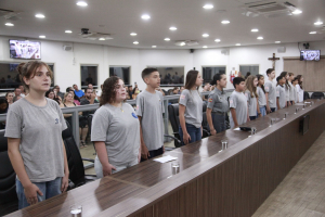 A Câmara de Blumenau, por meio da Câmara Mirim, realizou, na noite desta segunda-feira (24), a sessão de instalação da Legislatura 2025 do Programa Vereador Mirim, com o compromisso e posse dos vereadores mirins eleitos no ano passado. Após a posse, foi realizada a eleição da primeira Mesa Diretora Mirim da Legislatura 2025.