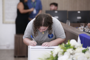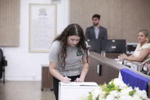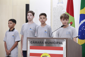“Como representantes políticos das suas escolas e da cidade, vocês não devem se conformar com o que sentem e com o que escutam. Porque é a partir desse inconformismo que vocês vão encontrar as energias necessárias para apontar aquilo que precisa mudar. Foi exatamente isso que fez com que eu me candidatasse, porque eu não me conformava com o que via e me candidatei para tentar ser a mudança que eu acredito na sociedade”, apontou Diego Nasato, ressaltando a responsabilidade deles de serem uma ponte entre o parlamento e a sociedade e de trazer a comunidade para próximo do parlamento. Por fim, desejou um excelente período na Câmara de Vereadores e colocou a Casa Legislativa à disposição, dizendo que os gabinetes não medirão esforços para fazer o que for necessário e conveniente ao parlamento mirim.