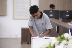 No início da solenidade, o vice-presidente da Câmara, vereador Diego Nasato, conduziu a posse dos vereadores mirins. Os parlamentares mirins diplomados prestaram em conjunto o compromisso de posse e, logo depois, foi feita a chamada individual de cada vereador mirim para assinaram o Termo de Posse em frente à Mesa.