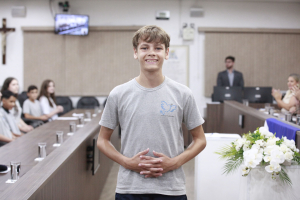 Vereadores mirins de Blumenau tomam posse e Bernardo Cardoso é eleito presidente da Câmara Mirim
