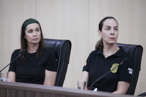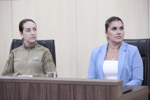 de Proteção à Mulher da Polícia Militar, a sargento Tatiane e a presidente da