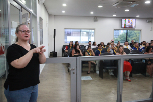 Roseane Rodrigues de Souza, integrante da Associação Blumenauense de amigos dos Deficiente Auditivos – ABADA, ocupou a tribuna livre para pedir mais acessibilidade em especial nas áreas de saúde e educação. Apontou dificuldades que os surdos enfrentam na fase escolar e quando precisam de serviços de saúde, em que há a necessidade de pagar um intérprete para acompanhá-lo. Disse que no SUS existem profissionais qualificados mas falta acessibilidade nessa área.