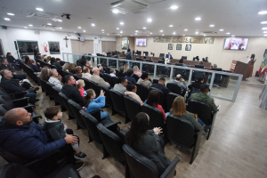 A solenidade contou com proposições dos vereadores Ailton de Souza – Ito (PL), Silmara Silva Miguel (PSD) e Jean Volpato (PT). Ao todo, foram entregues 14 moções de louvor e duas comendas municipais.