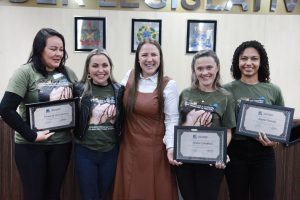 A vereadora Silmara foi responsável por conceder 13 moções de louvor, homenageando instituições de ensino e educadoras pelo desenvolvimento de projetos de grande impacto na rede municipal. Foram reconhecidos o CEI Nazaré; as professoras Rozidete Domingues dos Anjos, Janete Cristiane Speckhort Machado, Fernanda Nunes, Tânia Brant de Freitas, Marta Ferreira Lima e Mayara Fernanda dos Santos Kobs, pelo projeto Microvida em Ação; e o CEI Ingo Wolfgang Hering, pelo Projeto de Educação Fiscal 2024–2025 e o Projeto Minhocultura.