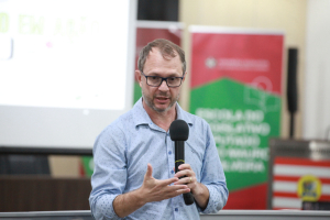 Na sequência, o mestre em Sociologia Política José Roberto Paludo apresentou a palestra “Planejamento de Mandato”, destacando o planejamento estratégico como ferramenta essencial para dar foco, organizar prioridades, evitar que os mandatos “andem em círculos” e garantir um legado duradouro. Ele ressaltou que o processo deve começar pela definição do propósito, ser acompanhado de metas claras, diagnósticos objetivos e avaliação constante, além de dialogar com práticas contemporâneas de gestão, como metodologias ágeis e ferramentas de comunicação e engajamento, reforçando que uma política de qualidade exige foco, propósito e avaliação permanente.