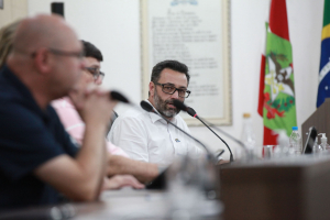 Na sessão desta quinta-feira (21), a Câmara de Blumenau recebeu o secretário municipal de Conservação e Manutenção Urbana (Seurb), Daniel Hostin, convocado por requerimento do vereador Ailton de Souza - Ito (PL), para prestar esclarecimentos sobre o edital nº 55/2025. O documento, que trata da contratação de serviços de manutenção da cidade, foi suspenso pelo Tribunal de Contas do Estado após apontamentos de irregularidades. No início da sessão, foi feita a leitura do requerimento, que questionava desde a origem do modelo do edital até possíveis responsabilidades administrativas diante das falhas apontadas.