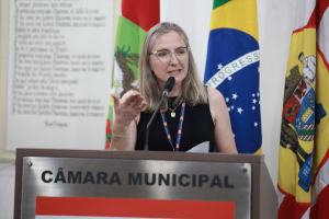 Helena Krieger de Borba, durante o espaço do Momento da Presidência. As