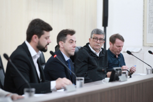 A Comissão Parlamentar de Inquérito (CPI) do Esgoto da Câmara de Blumenau realizou, na manhã desta terça-feira (18), a oitiva com representantes da Fundação Nacional de Saúde (FUNASA) no plenário da Casa. O encontro teve como objetivo principal tratar sobre a suspensão dos repasses de recursos do PAC FUNASA para o financiamento do sistema de esgotamento sanitário no município.