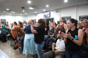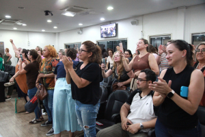 A oradora também apresentou um panorama dos investimentos do Governo do Estado nas escolas estaduais de Blumenau, que somam mais de R$ 9,5 milhões neste ano. Entre as melhorias, estão trocas de telhados, revitalização de quadras, atualização elétrica das 33 unidades e climatização total das salas de aula até o início do ano letivo. Cleusa destacou ainda a ampliação das escolas de tempo integral, a distribuição de uniformes completos e materiais escolares, a implantação de uma escola de formação para professores e o fortalecimento do modelo cívico-militar em duas unidades. Segundo ela, todas as ações integram o programa “Educação Levada a Sério”, que busca elevar a qualidade do ensino na rede pública estadual.