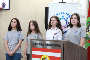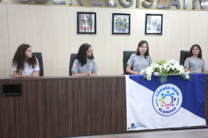 Vereadores mirins tomam posse e elegem Mesa Diretora composta exclusivamente por meninas